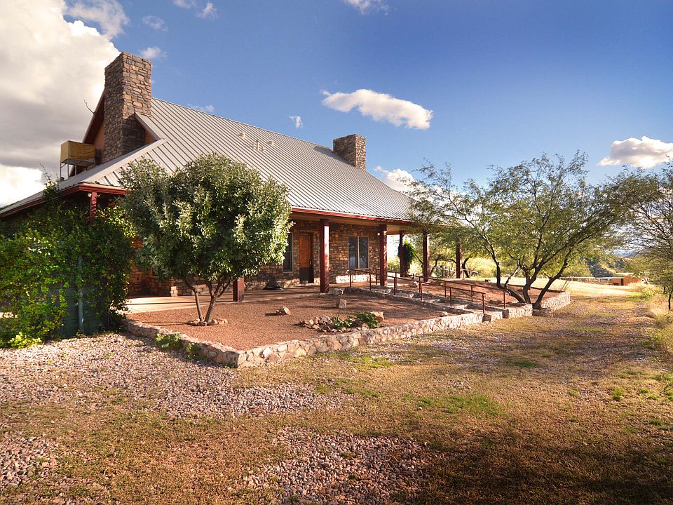 RANCHO LA LUZ! Handsome Territorial on 41ac in dramatic SONOITA CREEK RANCH ESTATES ...just SW of Lake Patagonia. A GREEN 2,820sf custom home w/3Be/3Ba/Stdy/AzRm & cost-saving SOLAR PHOTOVOLTAIC SYSTEM. Wrap-around porch & patio areas provide exceptional mtn & vista views & yr-round enjoyment. Master & Living areas are at ground level; Study/2Be/1Ba/2 bonus areas are above. Elegant regional styling, soaring ceilings, artful details & an exceptional setting are noteworthy hallmarks. A one-owner custom home of frame-stucco construction w/stone veneer & metal roof, concrete & wood flrs, hickory cabinets & pine doors. Enjoy beautifully resolved grounds w/stone retaining walls, horse/critter facilities & fencing. Premier SE AZ habitat, birding, climate! A MUST-SEE property to fully appreciate.