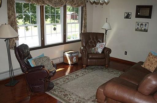 FIRST SHOWINGS AT OPEN HOUSE THIS SUNDAY 1-3PM! Beautifully maintained and updated. 3 or 4 bedrooms ranch with oversized 2 car garage, located in a great area of Easthampton. Large Open yard with covered screen porch, deck, gazebo, shed, and garden area! Fully fenced in back yard. The house has been beautifully maintained and updated which include flooring, complete kitchen and apliances and main bath, central AC, Buderus Boiler, and partially finished basement area; thats only on the inside. The exterior has updated windows and vinyl siding. The roof is only about 10 years old as well! This house was built for them and their family, they are the original owners, make this house your home today! All appliances are staying, Move in ready! Call me and come by the OPEN HOUSE this Sunday!