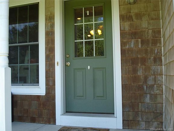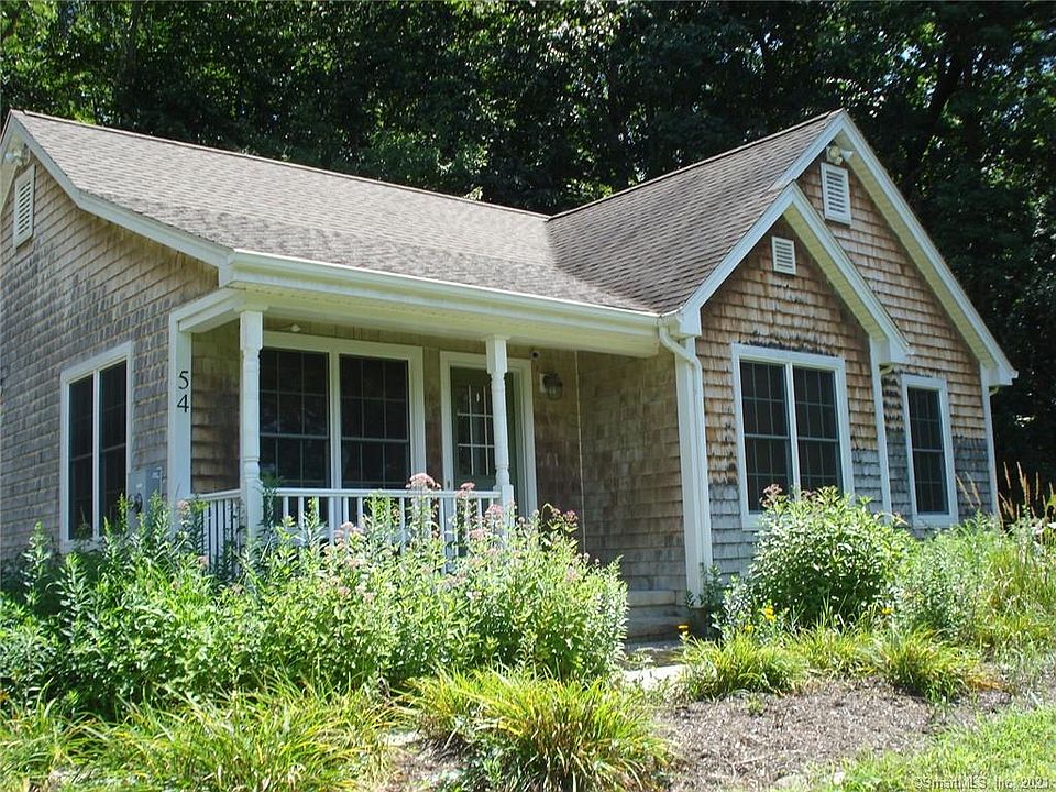 This three bedroom, 2 bath Brom Builder designed home offers a unique floorplan with hardwoods throughout. The open plan includes the living room which has a vaulted ceiling, kitchen and dining area. Oversized windows with custom wood blinds provide an abundance of natural light. Main bedroom has an ensuite bath and walkin closet. Slider in the dining area leads to a stone patio. Plenty of storage in the full basement. Home is equipped with a generator and is set back from the road for homeowner privacy. Very convenient location to ECSU and UConn. Room for expansion with this 1.7 A lot. Exterior cameras are in use.