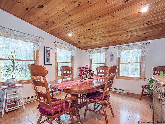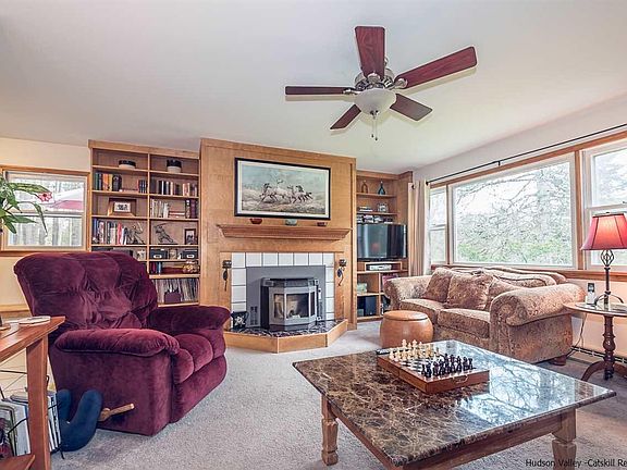 Warm and welcoming colonial on private country road in lovely setting. 3 BR's , three season room, office, LR, DR with vaulted ceiling, laundry room, updated kitchen, updated baths, newer appliances, trex decking, Master BR with balcony and cathedral ceilings, back-up generator, fenced pet area, newer roof, built-in book cases, pellet stove and more. All located just minutes from Stove Ridge and High Falls. Close to Saunderskill and Kelder Farms, hiking, biking and climbing. The office could be used as a fourth BR. The BRs are all nice sizes. The pellet stove does an excellent job of heating entire home.