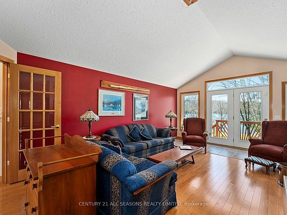 First Time On Market: This property sports a 3 bedroom 2 1/2 bath home on a beautifully landscaped 2.3 acre waterfront lot on beautiful Redmond Bay, just minutes from downtown Bancroft in a very private setting. This home features 3 bedrooms with a large 4 piece main bath and amazing ensuite and main floor laundry. The kitchen and dining room are open concept and the living room has a beautiful fireplace and fantastic views across the lake. You can also sit out on the large decks and enjoy the sunshine and views of the lake with a glass of wine. The large primary bedroom has a stand up propane fireplace to enjoy chilly evenings. The property has a 2 car fully insulated garage plumbed for propane heat and a large storage shed for your gardening tools. New roof in 2023 on house and new roof on garage in 2022. Property has manicured grounds, natural shoreline and dock. The unfinished basement is a blank canvas ready for you to complete. The list goes on and on. Come and have a look, you will not be disappointed! Book you showing now.