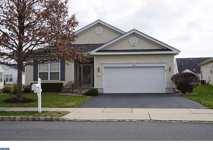 Great Ivy model home in the beautiful Four Seasons community that is in move-in condition! As you walk through the front door with it's etched glass accents you will find porcelain tiled flooring that runs from the foyer area down the hall and throughout the Kitchen and Family Room. To the left as you come in is the Great Room which features Hardwood Flooring. From the Great Room you will head down the hall and on the left you will find the large open Kitchen which features Corian Counter Tops and a Breakfast Bar that overlooks the good sized Family Room. Off the back of the Family Room there is a door that will take you to the large Patio out back where you can sit and entertain guests in the warmer weather. The large Master Bedroom is carpeted and features a large 11' x 9' walk in closet and a master bathroom that has double sinks and a large stand up shower stall. The door to the left of the Master Bedroom leads to the large second bedroom which is also carpeted and currently used as an office. The second full bath is just down the hall and there is also a large Laundry room. This home also features a large two car garage and all the amenities that the Four Seasons has to offer. You can enjoy the indoor and outdoor pools, fitness center, tennis courts or play some billiards or bocce ball as well as other activities. The Four Seasons is conveniently located close to Routes 130, 206 and 295.