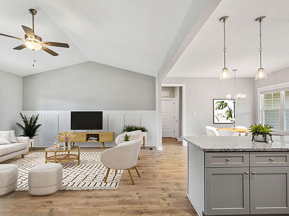 Looking for the perfect indoor and outdoor space for entertaining? Look no further! This 3-bedroom, 2-bathroom property is now available. Featuring an open floor plan with a stunning combination of granite countertops and white cabinets with soft closing feature. The living room boasts a cathedral ceiling that enhances the spacious feel. Step outside to a covered patio with an extended deck, perfect for gatherings, all situated on a nearly half-acre fenced lot. The primary bedroom offers a tray ceiling, an in-suite bathroom with double sinks, and a large walk-in closet, making it a great retreat. Enjoy the elegance of 9-foot ceilings and luxury vinyl plank flooring throughout the home. The oversized garage is finished and ready to be used as additional living space, complete with an AC unit, epoxy flooring, and overhead storage racks. This house combines functionality with the coziness you need!