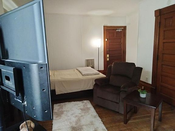 First Floor Furnished Studio Ideal for Short Term Rental. Spacious Area Includes A Queen Bed, Dining Table, TV And Recliner. Bathroom And Kitchen Are Separated From Sleeping And Relaxation Area. This Apartment is set up for Short Term Travelers, Up To Three Months. All Utilities Are Included In Cost. Requirements: Background and Credit Checks are Done By HIS Unlimited Inc. Proof of Income Online Application After Showing