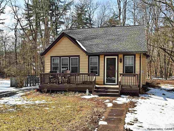 If you looked up the definition of a cottage in the dictionary, I'm pretty sure you'd find a picture of this adorable home at dusk with outdoor lights twinkling, a fresh blanket of snow, and a warm glow emitting from the windows. It's the kind of home that you walk by and get a whiff of something delicious wafting from the kitchen window. You'll love creating spectacular meals for you and your loved ones in the kitchen the owners thoughtfully renovated. Lots of counter space for prep and custom cabinetry provide plenty of storage for all your kitchen gadgets. Gorgeous original wood trim throughout the home adds character while the more modern floorplan provides convenience for hosting and enjoying your company all at once. Remove the carpets throughout the home to find hardwood floors just waiting to be refinished. When the party ends, escape to one of the two sizable bedrooms off the hallway. A recently renovated bathroom with beautiful built-in linen closet separates the two bedrooms adding privacy for each. The enclosed porch with heat at the back of the home offers the opportunity to use as an office, third bedroom, sitting room, etc. The attic provides even more room for possible expansion. When the weather calls us outdoors, the large, sun-drenched yard has plenty of space for play and produces the most bountiful organic garden already in place for you. You'll be able to move in just in time to plant your favorite veggies and herbs for this summer! Conveniently located in the quaint hamlet of Bloomington. 5 minutes to Kingston, 5 minutes to Rosendale, 15 minutes to New Paltz and 10 minutes to the Thruway. Walk three blocks and take the Trailways bus right to NYC!