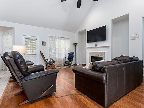 This beautiful custom built home in Timber Land is perfect for someone who wants the space where they need it - in the garage, workshop, outside and in the great room! Enter into the extra wide foyer and take in the beauty of the soaring cathedral ceiling, Pergo flooring and open floor plan. Great room has natural gas fireplace and plenty of room for lots of furniture. The stunning kitchen has stainless appliances, quartz counter tops, a pantry and tons of cabinet space, porcelain tile flooring plus an island with full view of the great room. Master suite is separate from the other 2 bedrooms and had two closets, double vanities and a walk-in shower. Spacious hall bathroom has convenient access to both secondary bedrooms. Ceiling fans in all the bedrooms and great room. Side entry 3-car garage is oversized and has a door to the back yard so the storage and work space is tremendous. There's also a 20x20 heated/cooled and insulated workshop with 2x12 ceiling joists and 220 power.