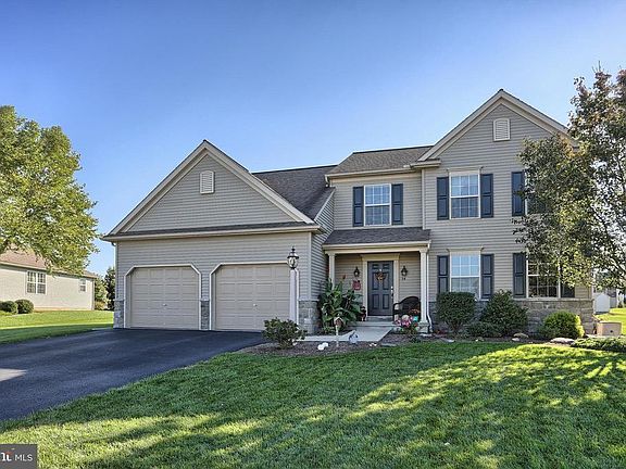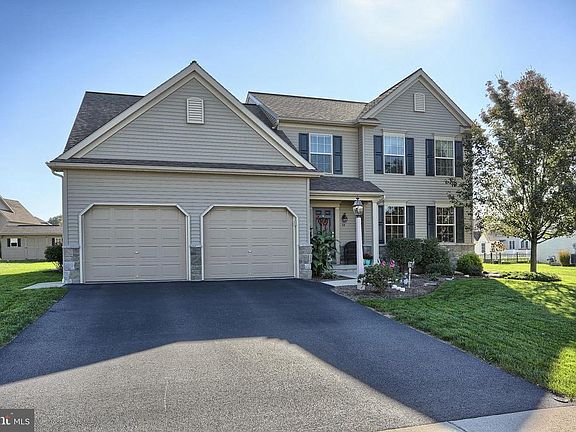Welcome Home to the original Riley model home of EGStoltzfus! This magnificent home features over 2,300 square feet to include 4 bedrooms, 2.5 baths, hardwood floors at entry and hallway, large eat-in kitchen, with spacious family room with gas fireplace. Enjoy the dining room that adjoins the formal living room. This home offers two master bedrooms with walk in closets, the second master bath has two entrances from the bedroom to hallway. Enjoy the beautiful hardscaped patio to include a fire pit! The shed and swing set convey. This home has been well maintained and loved. Super convenient to 322, 422, Palmyra Schools, Hershey Medical Center, etc. Schedule your private showing today!