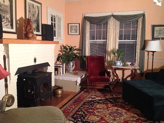 Remodeled 1920's bungalow that has a 300 sq ft studio which can be converted into an Airbnb rental with the addition of a bathroom. Two large bedrooms and bathroom on main level. All the rooms have high ceilings, with crown molding highlighting the living and dining areas. A breakfast nook complements the kitchen which opens to a deck, overlooking a large back yard and park. An artist's studio has large windows, again usable as a possible studio-apartment or spare bedroom, is on the lower level. The walk-up attic is spacious for storage while the dry basement has been used by this and prior owners for woodworking and other projects. It has an on-demand hot water heater -- used for domestic hot water, modern European radiators (in bedrooms and bath), and radiant floor heat in the studio. Two wood-burning stoves, in the kitchen and living room, can lower the bills and keep you warm in the winter. Ceiling fans keep you cool in the summer. Minutes from downtown and quality schools.