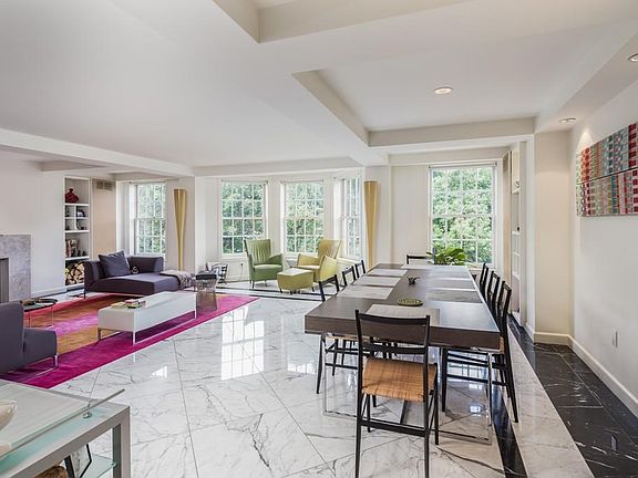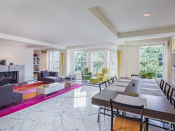 This home occupies the full length of the 4th & 5th floors & lives like a single. Direct elevator access. Notably wide halls & foyer greet you on main level. Expansive & open living/dining room w/ fireplace & windows overlook Comm Ave. Built-ins flank both rooms. Kitchen equipped w/ gas cooking, 2 sinks, & breakfast bar. Rear of the floor can easily become a 2nd master or 2 beds. Currently a media room, w/ wall of closets, wet bar, & 2 sets of double doors opening to faux balconies. Also on this level: ½ bath, coat closet, utility room, & walk-in closet. The upper level is home to the bedrooms. Master suite encompasses the entire front section. Double doors lead to a sitting area w/ art niches. French doors open to sleeping area.Beyond this room is a 6-piece bath & separate dressing room. A generous 2nd bed has en-suite marble bath. The 3rd bed can comfortably fit queen bed & offers double doors opening to a faux balcony w/ charming church views. 3rd bath & laundry room on this level