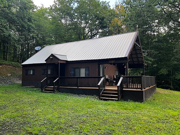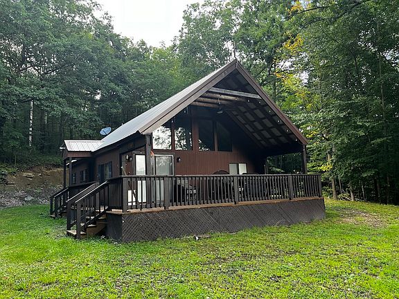 Located on a seasonal road just south of Cuba, your slice of heaven awaits. All of the creature comforts are available at this secluded two-bed, one-bath cabin with views across the valley. Enjoy a morning cup of coffee sitting on the front porch or looking out through the expansive windows, taking in a great view across the valley. There is an open-concept kitchen and living room with a pellet stove and spiral staircase up to a loft, which could be a third bedroom. The cabin comes fully furnished, so you can immediately enjoy relaxing in the foothills of the Allegheny Mountains. Two sheds are included to store toys for enjoying the expansive trail system that runs through the property. Almost 22 acres of mature hardwoods offer privacy and recreational opportunities, with deer, bear, and turkey routinely seen crossing the cleared strip for valley views. Priced well to sell, schedule a private tour of your future getaway today! ADDITIONAL INFO: New septic system, drilled well, electric and high-speed internet on site. Property sits on the border of Allegany and Cattaraugus Counties. Seasonal Road. GMOs convey.