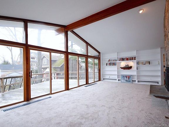 PRICE REDUCTION Opportunity knocking on Waterside Davenport Point private association street. This home is unique amid its surroundings - a standout. Mediterranean chalet ranch style with oodles of design potential. Once oil heated, recently converted to natural gas. In ground oil tank is gone and necessary documents are attached. Updated mechanics. Owned by sailing enthusiasts and nautical in spirit by virtue of its location with rear wall of sliding glass onto angled rear decking (an extension of daily living space, living room is brightly filled all day. Master bedroom suite adjoined by large family room, den, office. Can easily be converted to an even larger master while maintaining a smaller den or office. Two additional bedrooms on opposite side of floor plan with laundry and full bath. House offers a cathedral ceiling in living room and kitchen 9+ feet high. House needs updating but is, otherwise, in excellent condition in a very special Long Island Sound area. But wait; there's more....there is a two level / one bedroom, 1 1/2 bath guest cottage behind main house. In excellent condition, this property will convey with the sale of the house. The association maintains water access with boating dock. A boat slip may be purchased (separately from the association if boating is also in your future plan.