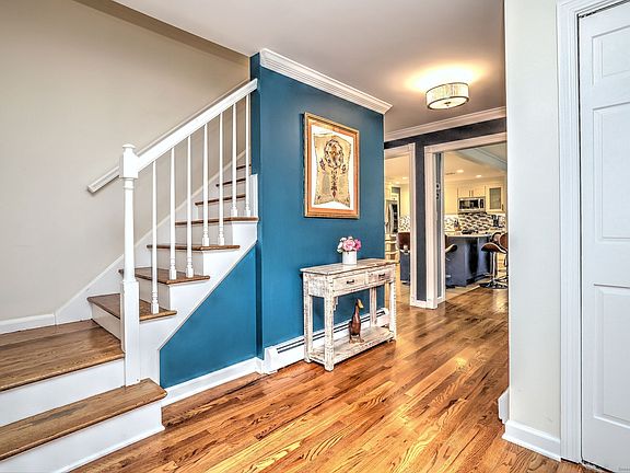 Discover this beautifully maintained colonial offering over 3000 sqft of living space with 4 bedrooms and 2.5 bathrooms set on a centrally located cul-de-sac in Woodbridge - an ideal blend of comfort, style, and convenience. Step inside to hardwood floors that flow throughout the entire home. The spacious family room with built-ins, sliders out to the deck and a propane fireplace, invites relaxation, while the recently renovated kitchen, complete with SS appliances, gas cooking, loads of cabinetry and stunning quartz countertops, serves as the heart of the home. Whether you're hosting gatherings or enjoying a quiet night in, this space truly delivers. The second floor features four well-proportioned bedrooms, including a primary suite with a walk-in closet and full bath. Downstairs, the finished walkout basement expands your living options with room for a media space, home gym, office, playroom, or even potential for an in-law! There is TONS of storage in the basement, plus a shed. Outside, unwind in the hot tub and take in the peaceful surroundings. Tucked away on a cul-de-sac yet just minutes from shopping, Yale New Haven Hospital and University, and major highways, this location offers serenity and accessibility. Recent updates include: new Pella windows, custom closets, irrigation system, generator, patio - see full list in attachments! With Thanksgiving on the horizon, it's the kind of home that makes you grateful long before the turkey even hits the table! Kitchen and both full bathrooms have radiant heat in the floors. Lights are all automated. Garage doors are oversized to ensure your vehicle will fit! Solar panels are leased. They were put on in 2015. See attachments for updates and solar info.