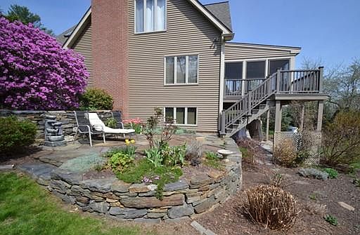 Stunning contemporary cape style home with exquisite landscaping located on beautiful So. Amherst cul de sac. Home has many new updates including: newer roof, vinyl siding, furnace & A/C. Propane fired fireplace in spacious, sunken living room is so inviting on a cold winter's day. OPEN floor plan with large dining room opens to the LR as well as to a three season porch & kitchen is perfect for entertaining. Updated kitchen with large island w/ granite counters, gas cook-top, & double ovens opening into Family Room. First floor bedroom/study with full bath complete the first floor. Generous master suite includes walk-in closet and bath with tub & shower. Two additional large bedrooms and a full bath complete the second story. Lower level walk-out houses a game room with a bath with toilet and rough plumbing! Seasonal views of the the Holyoke Range and just around the corner from Atkins. The Good Life awaits!!!