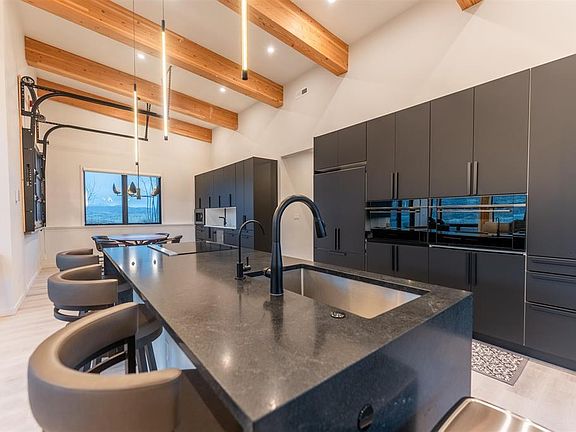 Welcome to 54 Crocus Road, a meticulously crafted modern sanctuary nestled adjacent to the Hartman Rocks recreation area in Gunnison. This efficiently designed home offers 3 bedrooms, 2 bathrooms, and an array of luxurious amenities spread across 1.38 acres of pristine land. Upon arrival, ample parking and equipment storage beckon, ensuring convenience and functionality. Step inside to discover a haven of contemporary comfort and style. The main living area is a masterpiece of open-concept design, where the kitchen, dining area, and living room seamlessly blend together under soaring wood beams. The kitchen boasts Fisher & Paykel appliances including a refrigerator, microwave/convection oven, steam oven, dual drawer dishwasher, espresso machine, and beverage refrigerator. Marvin windows frame panoramic views of the Hartman recreation area and West Elk mountains, inviting the beauty of nature indoors. In the living room, a freestanding Jotul gas burning stove exudes warmth and ambiance, while the adjacent dining room features its own espresso machine and beverage refrigerator, perfect for entertaining guests. Experience the seamless integration of indoor and outdoor living with a half-sized garage door connecting the kitchen to a covered concrete patio and outdoor bar. Enjoy al fresco dining and entertainment in the expansive outdoor space, complete with a roll-up garage door passthrough. Retreat to the primary bedroom oasis, complete with a spacious ensuite bathroom and walk-in closet. Two additional bedrooms share a beautifully appointed second bathroom, featuring custom tile-work. This home is equipped with all the modern conveniences, including a water softener, reverse osmosis system at the kitchen sink, whole house filtration, private domestic well, and carport. A highlight of the property is the 1,408 square foot heated shop space, offering endless possibilities for hobbies, storage, or workspace. Three garage bays plus an oversized 14’ bay door on the east side of the shop ensures easy access for vehicles and equipment. Welcome home to 54 Crocus Road, where modern luxury meets the tranquility of mountain living.