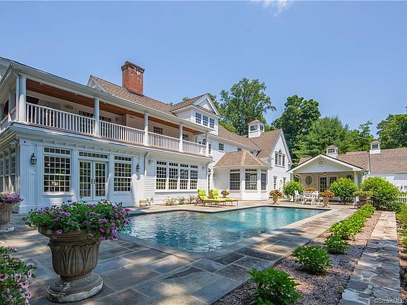 This 6.25-acre estate is an unrivaled paradise featuring more than $2 million in renovations. The breathtaking grounds, designed by Cambridge Designs, offer a peaceful retreat for every mood. Meander past vegetable planters, herb gardens and a cedar arbor. A pergola and gazebo are enveloped by fragrant flowers and a shade garden. The renovated gunite swimming pool is surrounded by an expansive flagstone terrace, fountain and upscale cabana. There's a large pasture and a renovated barn with two horse stalls, and children will delight in the enchanted playhouse. The main residence, a stately center-hall Colonial, has been meticulously renovated and expanded. Enjoy all-new flooring, windows, radiant and geothermal heating, and energy-efficient insulation. The main floor features formal living and dining rooms, family room, study with a fireplace and bar, and an eat-in chef's kitchen with custom cabinetry, granite counters and appliances by Wolf and Sub-Zero. A mudroom entry, main-floor bedroom and powder room add convenience. Enjoy garden views, vaulted ceilings, en suite spa bathroom and a walk-in closet in the second-floor owner's suite. Four more bedrooms, two baths and laundry complete this level. The third floor boasts a loft and attic, and the semi-finished basement includes home theater, a bar and an area perfect for a wine cellar. Located in bucolic Redding, Connecticut, this estate is surrounded by massive state parks, preserves, reservoirs and revered country clubs.