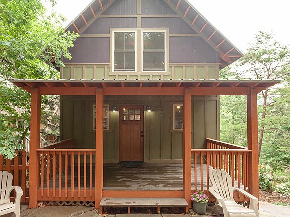 Adorable three level tiny home, perfect for artist, vacation rental, or just feeling 'away from it all' while being under 10 minutes from downtown Asheville! Lots of glass & cathedral ceilings w/loft bedroom give an airy open feeling. Cozy gas FP in living area, & deck to enjoy the view. Kitchen has granite tops, stainless, & gas range. Gorgeous stone patio w/outdoor fireplace & koi pond w/waterfall. Detached 2 car garage w/434 sq ft unfinished space above. Driveway up to parking to be paved!