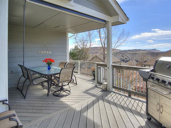 Welcome your family home to this special residence with panoramic mountain views! 6 bedrooms, main level office, walk out basement, 4 baths and nearly 4000 sq' of living space there's plenty of room for family and friends. Enter this home into heated, tiled foyer with sight lines through to the family room and the amazing mountain views beyond. The main and upper levels shine with beautiful 5" plank hickory floors. The kitchen is a cooks delight with SS appliances - including a 4 burner gas range, grill & griddle; concrete counters, vegetable sink in island, large prep island, pantry and storage galore in custom solid cherry cabinetry. There's an herb garden with oregano, mint, chives, thyme and tarragon. On the upper level are 4 bedrooms, a full bath plus the master suite. Pella Designer Series windows with black out shades. The master is a special retreat with room for a seating area; a barn door into the spa-like bathroom with concrete double sinks, a Japanese style soaker tub and glassed shower. The full sized and finished walkout basement has a space for TV viewing, pool table play, crafting, home office, home gyms or bedrooms and laundry. The 3/4 bath is a steam shower! The walk out provides lots of light into the basement and access to a stamped concrete private patio with mountain views. The yard has gardens, fruit trees and berry bushes, a concrete basketball/rollerblading/street hockey/tennis court with rebounder net to catch anything gone astray! A custom shed lets you store all the toys, sports equipment, gardening supplies and a potting bench. There's a custom spiral staircase that connects the lower patio with the covered Trex deck that is off the kitchen on the main level. One of the award winning schools is within walking distance from this home as are many of the hiking and biking trails. Community pools and tennis courts are a bike ride away! This home and the Ken Caryl Community are amazing places to raise your family!!