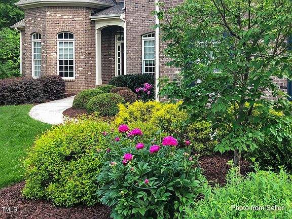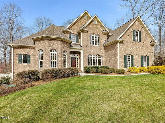 Live the grand lifestyle in this beautiful stately custom home. No detail has been missed within this beauty. Fully bricked exterior, sealed crawlspace, and updated within. The ceilings soar with a 2 story foyer and family room. Moldings surround the study and dining room, while the natural light illuminates the upgraded details. Two fireplaces, keeping room, both formal and informal dining, and a 3 season room to take in the outdoors. The expansive meadow view is showcased through a wall of windows. Noticeable finer details, such as the primary bath stone floor with amber accents throughout. Plenty of room for everyone as the rec room can double as a bedroom. Each room with access to a bathroom and spacious closets. Don't miss the large walk-in storage! HVAC units are newer along with a 2022 roof. Located in beautiful Chapel Ridge, a golf course resort-style community. Amenities to include pool, waterslide, sports courts, pickle ball, gym, playground and much more! See extra features in documents. Please visit https://www.chapelridgenc.org/governing-documents-and-policies/ for governing documents and ARB information.
