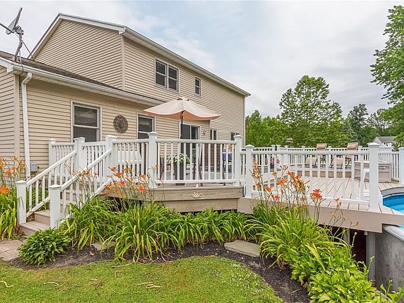 Beautiful, spacious 4 bed/2.5 bath colonial in Churchville Chili School District on almost an acre in the back of a neighborhood! Curb appeal is excellent! Gorgeous hickory hardwood floors throughout the first floor. Enjoy warm winter nights by the wood burning fireplace (regularly cleaned and inspected). The kitchen features granite countertops and a view of the backyard with above ground pool. First floor laundry area and powder room remodeled in 2019. The master bedroom with cathedral ceilings has the same beautiful hardwood floors as the 1st floor and features a recently (April 2021) remodeled bath that looks like it should be featured in a magazine! New flooring for the 2nd bathroom has already been purchased. Amish built shed big enough for a car (Oct. 2018), garage door and opener (spring 2020), new roof (2015). Delayed showings until 7/8. Offers due 7/12/21 at noon 2021-07-13