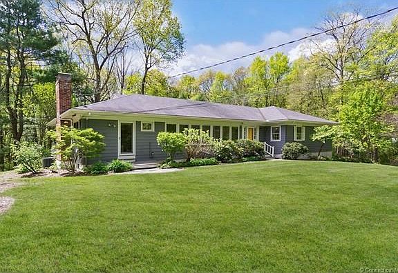 Privately set, oversized ranch with light-filled, stainless-equipped kitchen that opens out onto a large trex deck--perfect for entertaining and barbecues. The large yard has a fenced-in garden ready for you to plant. 1st floor laundry and mudroom, den/office with private entrance, plenty of built-ins and a wood-burning fireplace. Finished lower level family room (not included in square footage) offers loads of storage. Recently painted exterior. Across from Regional Water Authority property, step out your door to many walking trails, Sperry Falls and Lake Chamberlain. Enjoy privacy and convenience, with easy access to Yale, Merritt Parkway, and an award-winning school system.