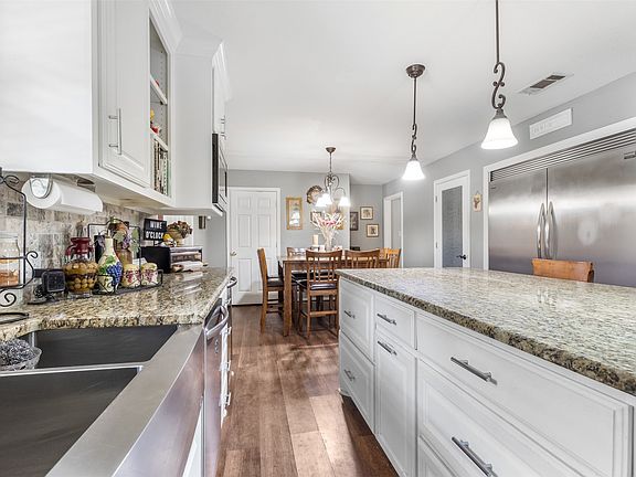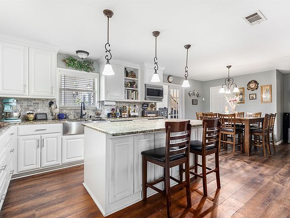 2.62 acres just OUTSIDE city limits. Beautifully updated 5-bedroom, 3.1-bath home. This property blends charm with modern updates throughout. The remodeled chefs kitchen features a large 8ft granite island, stainless steel appliances, tile backsplash, farmhouse sink, double oven, SUB ZERO refrigerator, pantry, and wine fridge. Spacious living areas include a sunroom with tile floors, wood flooring throughout, and some carpeted bedrooms for comfort. Four bedrooms are conveniently located downstairs, while the upstairs offers a PRIVATE ENTRANCE suite with its own kitchen, bath, and laundry, perfect for MULTI GENERATIONAL living or INCOME potential. Outdoor living shines with a large pool, outdoor shower, and fenced pool area. Pecan trees located on the back portion of the property. Car enthusiasts will love the insulated garage with space for THREE vehicles and WIRED for an ELECTRIC car charging station. The 40x40 detached shop-garage is perfect in winter and summer with the AC-Heat, plus kitchen area. Extras include a dog kennel, chicken coop, and plenty of open space for hobbies or future projects. With flexible living options, modern upgrades, and room to enjoy the outdoors, this property is a rare find. Buyer and Buyers Agent to verify all info in listing is correct.