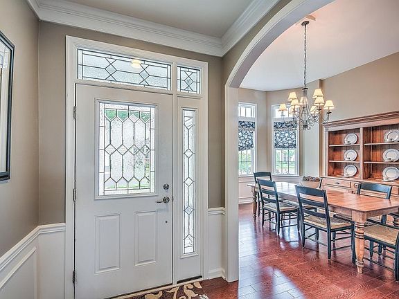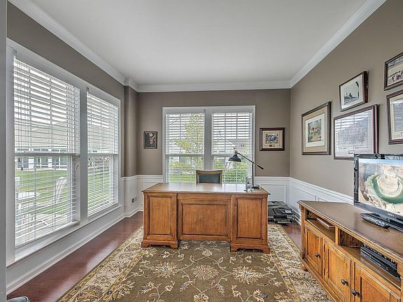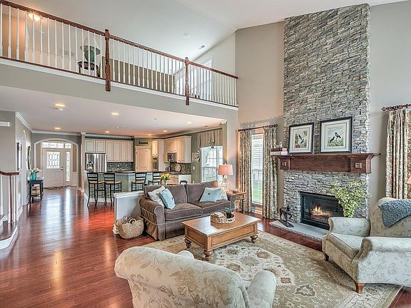 Prestigious Kensington Loft Home in Equestra!!! Great curb appeal as you walk up to the professionally landscaped stone paver walkway that mirrors the half wall stone facade, the entrance boast white trimmed curved archways with upgraded hardwood floors throughout, leading into the formal dining room lined with wainscot half walls with cathedral ceiling. The open floor plan is great for entertaining which includes a large kitchen island with farmers sink, topped with a 4 stool breakfast bar, SS appliances walk in pantry. The stack stone fireplace with oak mantel is the centerpiece of the home which leads into the library through pane glass doors. The master bedroom with tray ceiling crown moldings leads into an on suite with Jacuzzi Bathtub and seated glass shower, with a large walk in