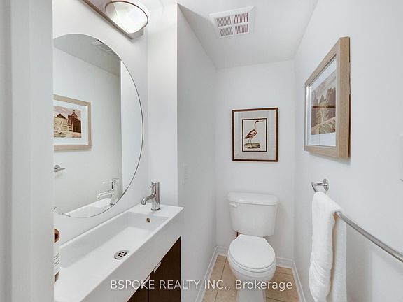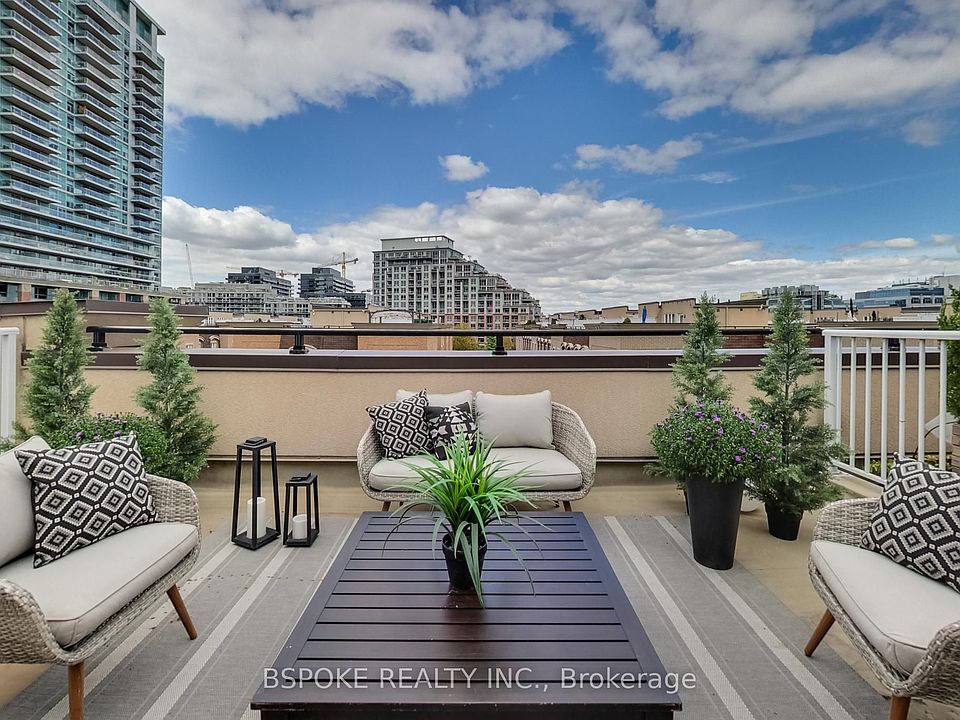 Almost 1,000 sq. ft. across three levels plus a private rooftop deck with a BBQ gas line and city views this Liberty Village townhouse is a smart step up from condo living. The main floor features an open kitchen, living, and dining area with windows overlooking a rose garden, along with a convenient powder room. Upstairs, two well-proportioned bedrooms - larger than the neighbourhood norm - share a full bathroom and an upgraded washer/dryer. The third level opens to a spacious roof terrace, ideal for barbecues, casual dinners, or unwinding with the skyline in view. Parking includes a built-in bike rack, and the oversized locker sits right beside the space for easy storage. The community is pet-friendly, with a dog park nearby. Move in and enjoy the space as it is, with the flexibility to update on your own timeline and make it truly yours.