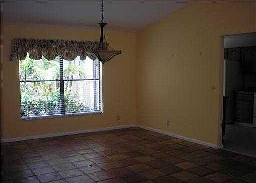 Charming PGA single story town home; large pets accepted but some breeds restricted. Corner unit, spacious rooms, feels like a single family home: 3 bedroom 2 bath 2 car garage town home in PGA National. Tile floors, large rooms, split plan, large screened patio, fireplace, large eat in kitchen with pass through, tile counter tops, double fridgel; inside laundry, newer W/D, new tub, vanity and tile in guest bath. Hurricane shutters. Available September 1, 2014.