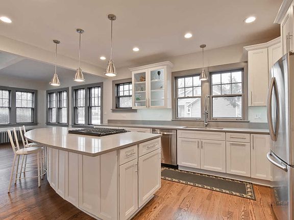 ENCHANTING FOUR BEDROOM RENOVATION FEATURING STORYBOOK TUDOR EXTERIOR W/ LOADS OF EUROPEAN FLAIR. SPELLBINDING SECRET GARDEN TUCKED IN BACKYARD TERRACED & ADORNED WITH PERENNIALS. SUPERBLY RESTORED OAK HARDWOOD FLOORS & FRESH PAINT INSIDE. OPEN CONCEPT KITCHEN REMODELED TO INC. HUGE CUSTOM QUARTZ ISLAND W/ COOK TOP RANGE & OVEN PLUS WALL OVEN. NEW STAINLESS STEEL APPLIANCES, UPDATED HARDWARE, GLASS FRONT CABINETS, UNDER CABINET LIGHTS & CONTEMPORARY PENDANT LIGHTING ILLUMINATE STYLISH BREAKFAST BAR. FAMILY ROOM W/ ROMANTIC STONE & BRICK FIREPLACE & SPACIOUS FORMAL DINING ROOM OFFERS COOL CUSTOM LIGHTING. 1ST FLOOR FULL BATH AND UPSTAIRS BATH WITH VINTAGE CHECKERBOARD & SUBWAY TILE. VAULTED & BEAMED MASTER SUITE WITH TWIN ALCOVES & BARN DOOR HINGED MASTER CLOSET. MASTER BATH W/ MARBLE FLOORS & JETTED TUB MADE FOR SOAKING. LOWER LEVEL WONDERLAND INCLUDES BUILT IN FISH TANK & FULL BATH W/GLASS BLOCK SHOWER & NEW FIXTURES. HISTORIC CRYSTAL LAKE MASTERPIECE NEAR TRAIN & DOWNTOWN CL DELIGHTS