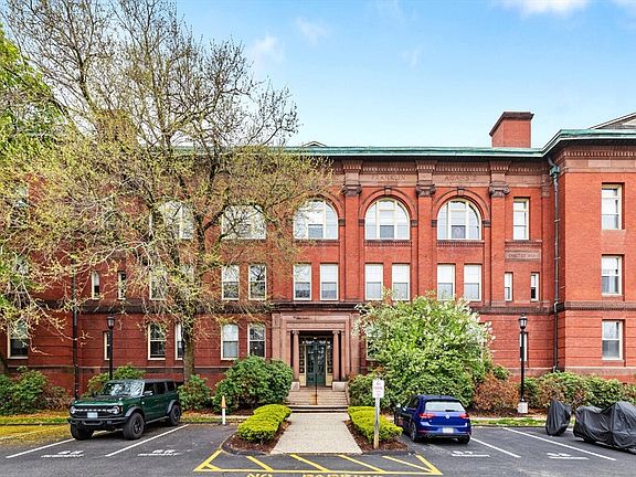 Comfortable, convenient & stylish, this coveted 1st floor condo at the iconic Old Medford High School Condominiums offers character, charm & a superb commuter location near bus lines & major routes: I-93 on-ramp, I-95, MA-60, MA-16 & more. This sought-after, well-kept building features an indoor pool, sauna, tennis court & this gem includes storage & 2 parking spaces: one in the garage, one right out front. Step inside & enjoy high ceilings, dramatic oversized windows with deep sills, exposed brick, wood paneling, original blackboards & designer lighting. Hardwood floors enhance the open & airy living room with space for dining. Lovely kitchen is outfitted with birch cabinetry, slate counters, island & stainless appliances. Generous main bedroom boasts paneling & en suite bath. Exposed brick hallway leads to nicely sized 2nd bedroom, full bath & small bonus room for office or walk-in closet. Ideally located by Chevalier Theatre, historic Medford Sq. & only (approx.) 6 miles to Boston.