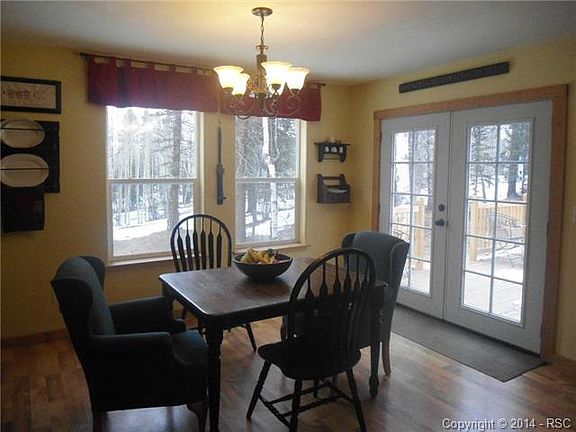 Built in 2006 this custom log sided home has a beautiful level lot with a fenced back yard. Over sized garage is finished inside and fully insulated. The home has an upgraded insulation package throughout. Ceramic wood stove can heat up the whole house. Composite wood floors on the main floor, solid core 6 panel wood doors, hickory wood cabinets. Kitchen has a breakfast bar and french doors leading to a back deck and a full sized dining area. Located in Teller County, Colorado close to Mueller State Park, Florissant Fossil Beds National Monument, and Pikes Peak. Lots of outdoor activities for the whole family. Cripple Creek for local gaming, easy commuting distance to major employers in Colorado Springs.