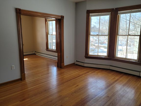 Second floor unit has 3 bedrooms, 1 bath, hardwood floors, newly renovated bathroom, private porch, large fenced yard and off street parking. Tenant pays all utilities except water. Oil heat. Available March 1.