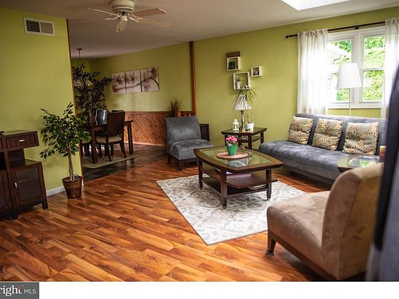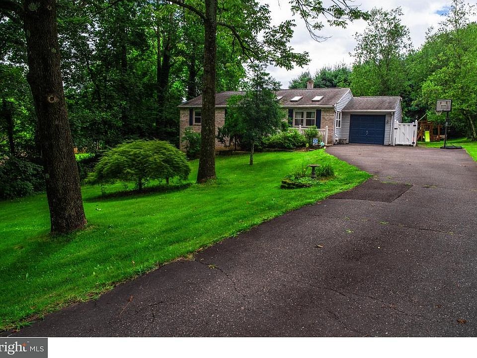 Quaint and pristine three bedroom ranch home cradled within mature trees and ornamental plantings. Living room is illuminated with three skylights, dining room with slate flooring and sliding doors to deck. Refreshed kitchen with painted cabinetry, all newer appliances, built-in microwave, dishwasher, and counters and backsplash installed by Longacres. Picture window allows the enjoyment of the private backyard, extensive landscape, two-tier deck with pergola, and pool. Laminate flooring carries from living room into hallway that leads to three bedrooms and hall bath with sky light, along with a powder room with access to master bedroom as well. Finished basement with daylight walk-out and propane stove adds more than 400 sq ft of cozy living space, along with utility area with plentiful storage. One car garage, shed (don't miss it, tucked in back corner!), radon remediation, central air, and ceiling fans throughout!