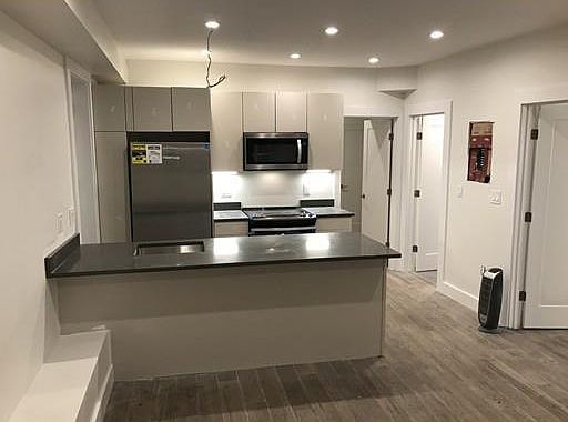 Come check out the fabulous new renovations! Be the FIRST to live in this stunning street-level, private entrance renovation. Walk into your open concept living room / kitchen area, with access from the kitchen to your private patio. All appliances, including an in-unit washer and dryer, are brand new! Both bedrooms feature a great amount of space, recessed lighting and are close in size. This unit is pet friendly! Available 2/1/18, with more pictures to come as the renovations are finished. Rent includes hot water, tenant is responsible for electric heat / electricity / cable and internet.