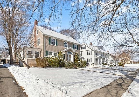 Without a doubt one of the most desired streets in Melrose! Fantastic opportunity to own this classic Center Entrance Colonial located in the fabulous Bellevue Country Club neighborhood. This 8 room, 2.5 bath home with 3rd flr expansion possibilities is a delight for entertaining. Welcoming foyer and front to back living room with fireplace, custom built-ins & beamed ceiling. French doors off the LR, a hard to find family rm addition with a vaulted ceiling offers tons of natural light. Entertaining size dining rm, an updated eat-in kitchen, half bath & sunroom which would be a great in-home office space complete this wonderful 1st flr living space. The 2nd flr includes a generous size primary bedroom including an en-suite bath, 2 additional bedrooms, a full bath & separate walk-up stairs to the attic. Nice level lot with a 2-car garage, replacement windows, irrigation system & updated electric. This is a well cared for home in the location you've been waiting for!