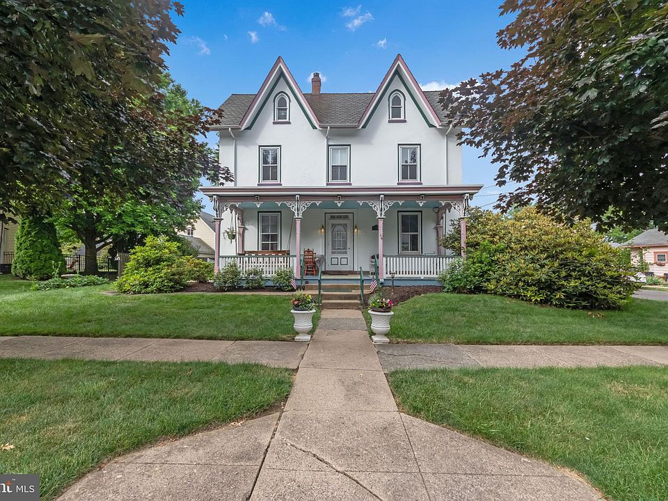 Lovely stucco over brick late Victorian home in Historic Ivyland Borough just waiting for a new owner. Gracious front porch perfect for lemonade, or cocktails. This estate features hardwood flooring throughout the majority of rooms. Enter into the home and the living room features the original lighting fixtures as well as deep windows. The dining room features the same deep set windows and new flooring. A large country kitchen has oak cabinetry, a brick floored smokeroom with a stained glass window, a walk in pantry with a dry sink and access to a large windowed sunporch. The second level features a remodeled full bath with a claw foot tub, tiled shower with built in bench and seamless shower door and a green marble topped vanity. Access to the laundry room is from the main bath. There are three spacious bedrooms on this level, including the primary, all with deep set window sills and wood flooring. The third floor features two additional bedrooms as well as a large storage room. Situated on a corner lot, this property features mature plantings and a beautiful yard. The home is being sold in "as-is" condition with the estate not making any repairs. The Ivyland Borough Certificate of Occupancy is the responsibility of the buyer.