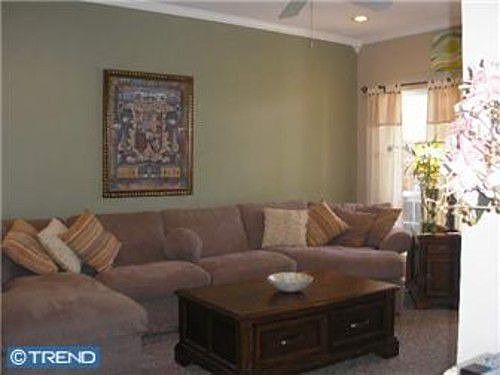 Beautiful grandend unit raddock model at WatersEdge. Wooded view, 2 car garage, upgrades thruout. Southern sunfilled exposure. 2 story foyer offers hardwood floor, also in fmrm & livrm. Gas log fireplace. Kitchen offers 42' cabinets,pantry, gas stove & more. Master suite has dual vanity, whirpool tub, stall shower and balcony overlooking bubbling brook and fountain. Freshly painted neutral thruout, delightful to show. Owner will consider holding some financing.