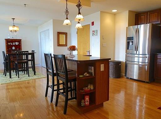 Stunning accommodations in one of the largest units in this renovated mill building. Welcome to 404 in The Wellington. A much sought after corner unit on the 4th floor, the soaring, beamed ceilings and huge windows set the tone for this comfortable, sun-splashed space. The bright living room opens to the dining room, flowing into the kitchen that is well appointed with a dine-in island breakfast bar, custom cabinetry and handsome granite countertops. Shining hardwood flooring adds to the charm. As you move down the hall, the two bedrooms are huge, with plenty of closet space and high quality Berber wall-to-wall carpeting. The Master Bedroom at the end of the hall is positioned nicely in the corner of the unit allowing plenty of natural light. It also boasts double, cedar closets. Conveniently located close to downtown, shopping, the MBTA Commuter rail, and Route 2/190. The Wellington Condo's are also FHA-Approved! This charming space is the right place at the right time.