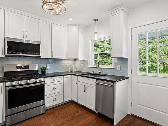 Discover this rare combination of classic character and charm with thoughtful, MODERN UPDATES and spacious, BRIGHT living spaces. Enjoy one floor living and a large, flat lot. The amazing kitchen was totally renovated in 2023 with NEW CABINETS that offer pull out shelving, uppers that extend to the ceiling and other quality features, LEATHERED GRANITE counters, glass TILE BACKSPLASH, stainless appliances, including BOSCH FRIDGE and DISHWASHER, 5 burner gas range and externally vented exhaust. Gorgeous hardwood floors, HIGH CEILINGS, DESIGNER LIGHTING, French doors, transom windows, arched entries, wooden beamed CATHEDRAL CEILING family room, and Owens Corning finished basement are just some of the additional features that will delight you. Keep cool with 2019 heat pump for AIR CONDITIONING or head out onto the EXPANSIVE DECK overlooking a PRIVATE BACK YARD. This stunning home is move in ready and its long list of wonderful features will certainly impress the most discerning buyer.