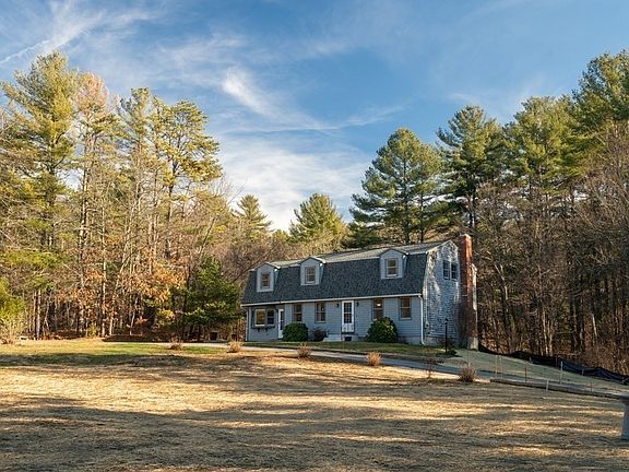 Set back off the street this expanded gambrel colonial offers a spacious, flexible floor plan. The first floor boasts a large sunny family room with pellet stove adjacent to the eat-in kitchen. There is roomy living room and a cozy den/office tucked away on the first floor for those who need to work from home. The second floor offers 4 bedrooms including a large primary bedroom with a step down sleeping area and a spacious bath boasting a jetted tub and his and hers closets. The 2nd full bath on the 2nd floor has been recently updated with beautiful tile tub surround and handsome vanity. All but the family room have gleaming hardwood floors which have been lovingly maintained. The basement level is walk out and ready to be finished if one requires even more space. New water heater Fall 2022. New septic system 2022. This unique lot offers privacy with the house snuggled in to woods to the rear. A new property line has been drawn in front for new septic will make lot larger.