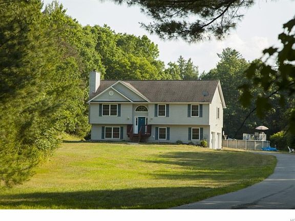 You will love the open, light spacious feeling when you walk into this home with 4 bedrooms and 2.5 bathrooms. Great for mother-daughter. Conveniently located and very secluded, surrounded by woods and bordering the Nature Conservancy. Features include central air-conditioning, two-car garage, walk-up attic, and paved driveway in a wonderful setting on 3.8 acres. Snuggle up to the wood-burning fireplace for those cold winter nights or enjoy morning coffee on your deck listening to the birds. Whether you enjoy entertaining in the large backyard or creating the garden of your dreams, this home has room for every interest.