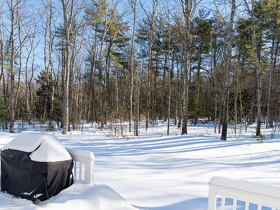 Near the end of a cul-de-sac sets this hidden gem in Barrington with a perfect commuter location. This colonial was custom built by its current owner who included extensive hardscape. Granite stairs, paver walkways and stone retaining walls with mature landscaping lead to the full front farmer’s porch. The substantial rear deck is surrounded by manicured lawn abutting acres of undeveloped woodlands. An oversized garage under accesses a walk out partially finished basement with an equal area of storage space. The meticulously finished man cave is 540 square feet of tongue and groove pine walls and ceilings. The floor plan is designed for entertaining. The kitchen is unusually large with extensive counter space and a peninsula bar, wine fridge and breakfast nook. The huge cathedral ceiling family room features a gas fireplace, Palladian window and twin ceiling fans. The bright dining room has hardwood flooring and is adjacent to a spacious office/den. A half bath and laundry complete the first floor. The second floor of this well cared for home has 2 large bedrooms and a full bath, plus a supersized master bedroom with an equally vast walk in closet and private full bath. All of the rooms in this well built home have an abundance of natural light. An 8x16 shed is included