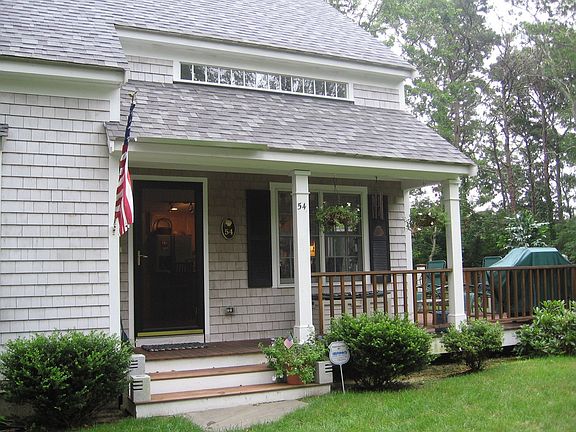 Newly built contemporary cape set on 3/4 of an acre wooded lot within walking distance to Craigville Beach. Three bright and clean, king sized bedrooms and two full baths go with the open floorplan first floor. Kitchen is new granite and stainless throughout, with maple cabinets and recessed lighting. Not your typical "musty, moldy" cape house. With central air conditioning and clean, natural gas heat and gas fireplace, this vacation getaway has all the modern comforts of home. Storage shed. Neighborhood Description The neighborhood is primarily year round residents, very quiet but only a mile to either the beach or the stores.