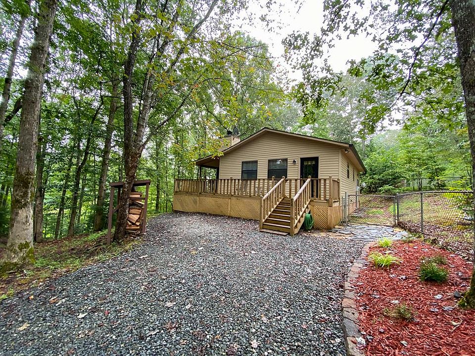 This well-maintained immaculate home is nestled on beautifully wooded property. Home features hardwood floors throughout, rock fireplace, stainless appliances, granite countertops and a covered porch overlooking woods and wildlife. A portion of the yard is fenced for pets or children. New roof, new crawl space insulation and 3-year-old HVAC system. With a convenient location and paved road access this property is perfect for full time living or a vacation get away.