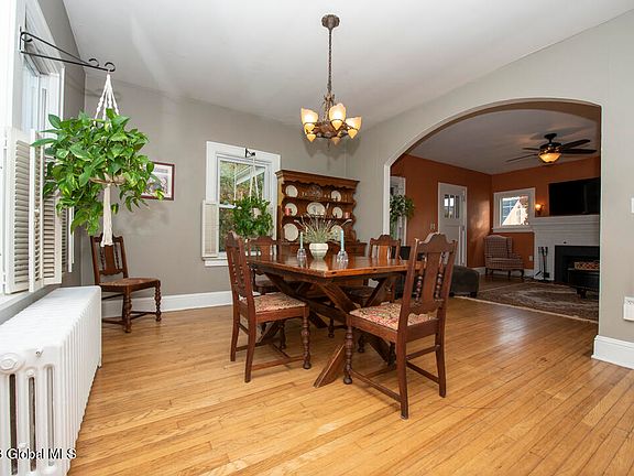 Charm exudes in this light filled & expanded 4 BR, 3 Full Bath Cape with h/ floors t/o, arched doorways, a lovely front porch and 2 beautiful f/ps, (one gas and one w a wood stove insert). This versatile home offers a fabulous family room addition w/ a private entrance that features vaulted ceiling w skylights, laundry/mud area & the 4th bedroom w full bath, which could also make a wonderful in-law apt or home office. Other special features include a great floor plan with kitchen and large dining area open to living room, large 1st floor bedroom adj to 1st flr bath, 2 upstairs bedrooms; one with a w/in closet and the other a private ensuite bath. All this with a lush and private backyard with in-ground pool and a prime central Colonie location.