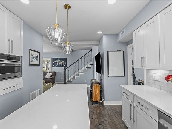 Relax and enjoy the ample outdoor living space this home has to offer. The large deck is perfect for entertaining with lighted space below for more seating options. The picturesque backyard is fenced in, making it feel private and secluded. A fire pit and patio designed with custom stonework is the perfect setting to have campfires and unwind. Recently remodeled in 2022, the main level has an open floor plan. The sleek, modern kitchen has been upgraded with energy efficient appliances and a quartz waterfall island with seating area for family to gather. The first floor is bright with hardwood floors throughout and includes a 4th bedroom or dining room. The second floor has three bedrooms with custom closets and a full bath. The finished walk out basement offers a home office and space for the family to spend time. Located in close proximity to Boston, the commuter rail is just a short distance away.