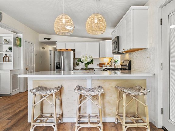 - Features: Vaulted Ceiling(s), Flooring - Vinyl, Dining Area, Countertops - Stone/Granite/Solid, Exterior Access, Open Floorplan, Remodeled, Slider, Peninsula, Lighting - Pendant, Lighting - Overhead