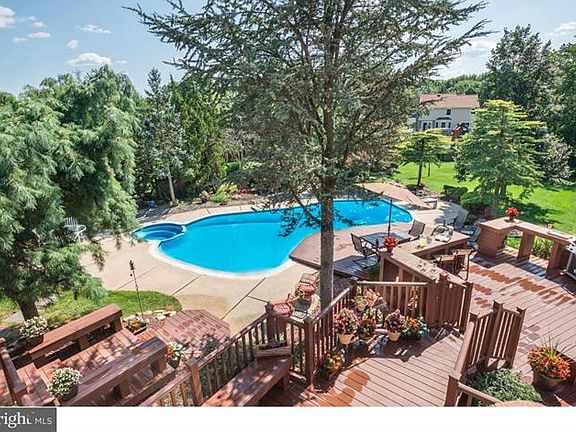 "Welcome to Chamonix" A quiet beautiful neighborhood located in Mount Laurel. Walk into this lovely home and you are surrounded by warmth and charm. Foyer has stunning 2 story curved staircase, wide plank wood flooring extends from entry through formal dinning room. This open floor plan is great for entertaining. Very large living family room opens up to sun filled kitchen with a peninsula and beautiful white Corian counter tops. The office with seperate entrance from inside or outside can also be a bedroom or aupair suite. Sliding glass doors through kitchen or family room lead you onto a maintenance free multilevel deck overlooking the magnificent backyard. Splash and swim around large kidney shaped in-ground pool. There is a koi pond with bridge leading to gazebo and a shed to store all outdoor equipment. The professionally landscaped property is lush and beautiful all year round. Upstairs Master Bedroom Suite has sitting area and glass french doors that open to a balcony. Large bathroom has two sinks, makeup counter and soaking tub. There are 3 more bedrooms with extra large closets and another full bathroom. Home also offers pull down floored attic for extra storage, full unfinished basement and 2 car garage.