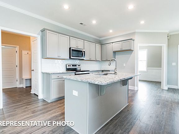 Fall in love with the 1st floor main suite with tray ceiling, double WICs & 5ft shower. Kitchen showcases gorgeous cabinets, granite countertops, tile backsplash, stainless steel appliances & island w/seating. Additional features include living room with gas log fireplace and built-in bookshelves, large bonus room, plus covered front & back porches! Large lot, low HOA dues and no city taxes! Act fast! Photos of similar homes and cut sheets are for representation only and may include options, upgrades or elevations not included in this home.
