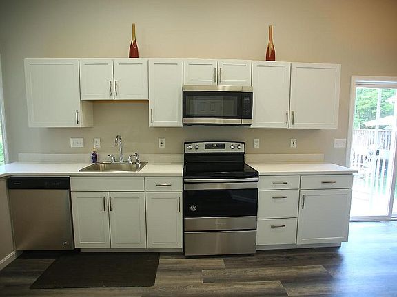 The spacious house with over 1800 s.f. First floor Living Rm. & Family Rm. w/vaulted ceiling. New white kitchen with quartz countertops and new SS appliances. New flooring and freshly painted. Updated bathrooms. Relax on the deck & enjoy the wooded view.